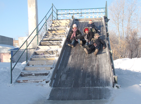 На снимках: новогодние персонажи Крутинки; каникулы на горке |