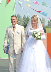 В новом качестве - молодоженов - пришли на праздник Василий Подкорытов и Анжела Егорова. Они и не пытаются скрыть своих чувств: «горький» поцелуй, востребованный зрителями, оказался настолько страстным, что у многих из нас вспыхнула зависть к жениху.
