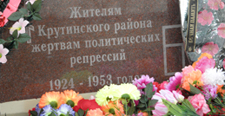 В прошлую пятницу в р.п. Крутинка был открыт памятник землякам, ставшим жертвами сталинского режима. На митинг пришли представители предприятий и организаций, школьники, жители райцентра, родители которых были репрессированы.