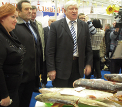 А в Экспоцентре народ дивился нашей рыбой, которую представило КФХ «Прудовое». Специалист хозяйства Олег Бабаев увлеченно рассказывал всем, как определить возраст рыбы. Оказывается, сколько колец на чешуе, столько и лет. В.П. Рарову пообещал от хозяйства выловить 500 тонн рыбы, чем немало порадовал министра. Рыбу крутинских озер с удовольствием покупали горожане и на ярмарке у Экспоцентра.