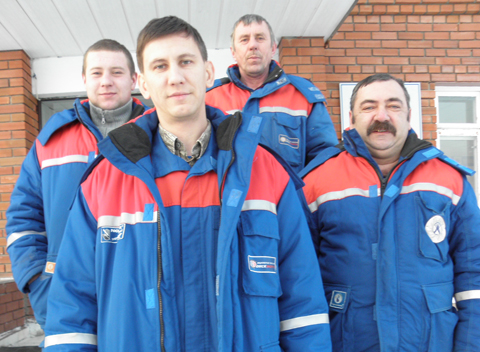 Начальник Крутинских РЭС К.В. Пучков представляет мне бригаду оперативного реагирования, которая в этот день, накануне профессионального праздника энергетиков, несет службу – электромонтера по оперативным переключениям Игоря Струнина, мастера участка Артура Арзуманяна, электромонтеров оперативно-выездной бригады Сергея Петрова и Михаила Искоренко (на снимке).