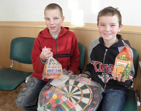 Пожалуй, больше всего радовались нашим подаркам победители детского конкурса - братья Никита и Данила Швеины из Новокарасука (на снимке). Они написали стихотворение про своих любимых питомцев - кроликов и кошек. Младший, семилетний Данила, признался, что они с братом мечтали именно о дартсе. И редакция на этот раз оказалась в роли Деда Мороза. Есть теперь у мальчишек чем заняться в зимние вечера - развивать меткость. А еще они пообещали и впредь участвовать в редакционных конкурсах, которые мы обязательно будем проводить - наступил Год ребенка. Так что следите за «СТ», играйте и выигрывайте.