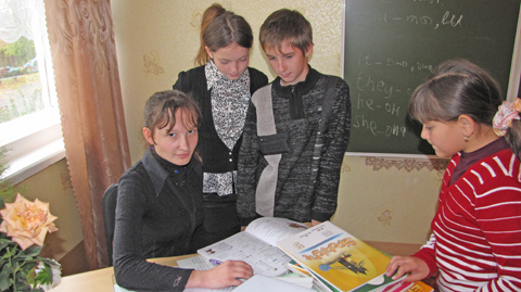 Вместе мы идем в кабинет английского языка, где Катя Забродина в игре старается научить ребят новым словам.