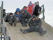 Дети уже успели оценить все прелести новой забавы. Здесь же появились сказочные герои из снега, главный среди которых, конечно, Дракон. Он теперь «охраняет» почти каждую организацию в райцентре.