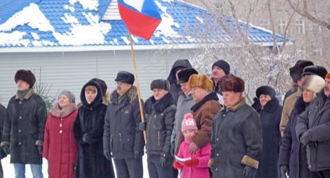 Несмотря на морозную погоду, 11 февраля в центре Крутинки собралось порядка 150 человек. Они пришли на массовый митинг с флагами России и Омской области, чтобы высказать свое мнение по поводу выборов президента.