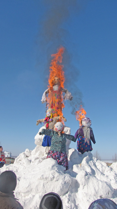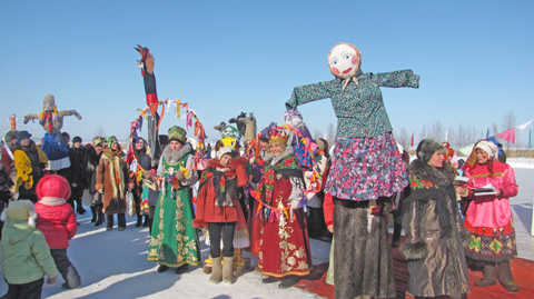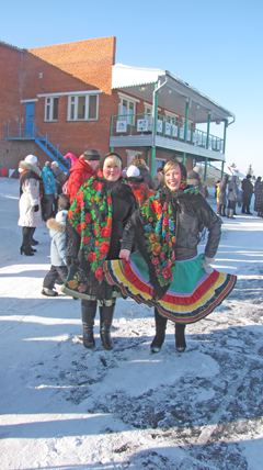 Народ согревался горячим чаем, угощался сдобой и, разумеется, блинами с маслом. А ноги невольно пускались в пляс под мелодии задорных русских песен. Ребятишки катались с горки и на лошадях. Артисты приглашали всех водить хороводы и участвовать в конкурсах и розыгрышах. Масленица разгулялась не на шутку. По доброй традиции прошел творческий марафон трудовых коллективов райцентра.