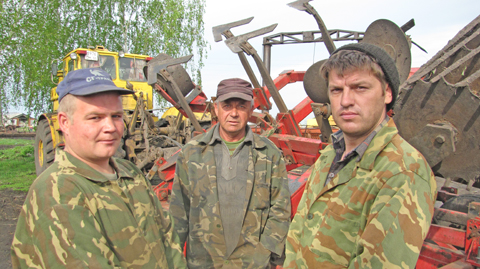 На стартовой площадке я нахожу всех механизаторов во главе с шестидесятилетним ветераном акционерного общества Николаем Бородиным. Рядом его племянник, Алексей Бородин, прогревает движок К-700. Покуривая, ждут погоды отец и сын Луневы: Юрий Иванович и Захар. Еще раз подчищает катки своего агрегата Александр Сычев. Сергей Комаров, Андрей Даньшов и Виктор Зыбарев, говоря спортивным языком, «выступают» за чикишевцев, а Сергей Соломахин представляет самаровцев. В кузнице делами заправляет мастер на все руки Валерий Сарызин. Он и сварщик, и кузнец, и слесарь.