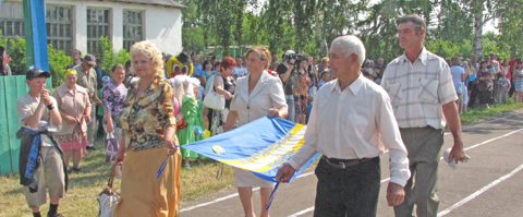 Впервые в истории районных спортивных праздников флаг спартакиады на поле выносят заслуженные люди села, ветераны труда З.М. Сярг, Н.М. Кризо, С.К. Корчевская и А.И. Юрьев.