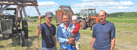 В деревню мы привезли внука нашего водителя Александра Шромова. Маленький Арсений с восторгом вбегает в хоромы другого, камчатского, деда и сразу попадает в объятия бабушки Лены. Дед, сорокавосьмилетний Александр Серегин, с утра на покосе. По обыкновению он возглавляет мехзвено косарей, которые и обеспечивают сеном всю живность деревни Камчатка.