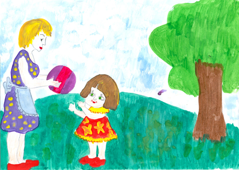 - Мама у нас добрая, никогда не ругается, - говорит девочка.