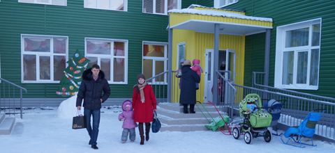 У крыльца нового детского сада - саночки и детские коляски. Такие картинки здесь не видели больше десяти лет с тех пор как из этих стен ушел детсад «Колосок».