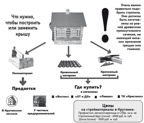 Всеми ремонтными работами Виталий привык заниматься сам, ведь по образованию он строитель и имеет большой опыт в этой сфере. Взять в руки молоток для него не составляет проблем. Но трудности все-таки возникли. Чтобы построить такую крышу, семье потребовалось около 120 кв./м кровельного настила. Купить такое количество в Крутинке оказалось значительно дороже чем, к примеру, в Омске или Называевске, если даже включить транспортные расходы. Полистав газеты с объявлениями и посоветовавшись с коллегами, строительный материал Ничковы заказали в Называевске. Конечно, время здесь не лучший союзник, но наши герои не отчаиваются и в течение месяца собираются осуществить все намеченные планы.
