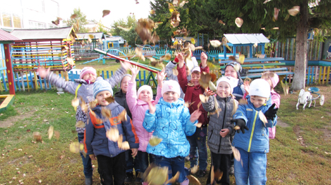 Воспитанники детского сада «Светлячок» с удовольствием выходят на прогулки и радуются золотой осени. Ну и что, что на улице прохладно. Зато в группах тепло и уютно.