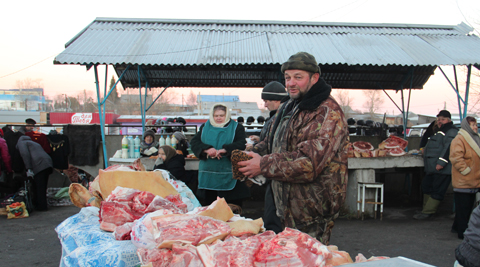Третий понедельник мясные ряды районного рынка ломятся от продукта. Начался традиционный осенний забой откормленной за лето скотинки. Не дождавшись холодов, продавцы реализуют свинину, говядину, баранину и конину, птицу и различный сбой. Предложение намного превышает спрос.