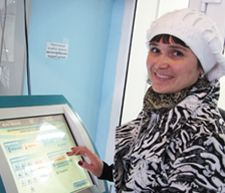 Жительница села Оглухино Ирина Жойдик просматривает информацию о вакансиях. Для этого очень удобно пользоваться терминалом, установленном в Центре занятости
