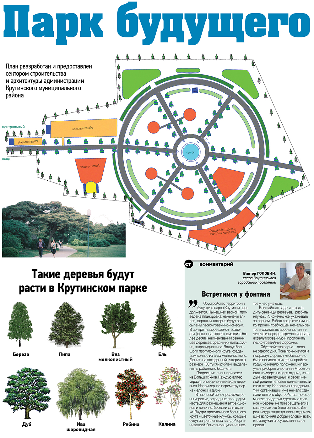 Реконструкция центрального парка Крутинки началась два года назад. Старые деревья, простоявшие здесь более 70 лет, были выкорчеваны, а на их месте по новому проекту начались плановые посадки березы, сосны, липы.