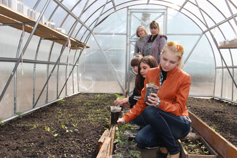 - За каждым классом у нас закреплен свой небольшой участок. Даже ученики начальной школы вовлечены в процесс, правда, пока в основном в роли наблюдателей. С ребятами постарше мы установили теплицу. Привезти земли помог директор ГП «Крутинское ДРСУ» Ю.А. Кривун, за что мы ему очень благодарны. Уже посадили помидоры и перцы, а также цветы, часть которых пойдет на озеленение поселка, - рассказывает директор Крутинского лицея Наталья Владимировна Свиридова.