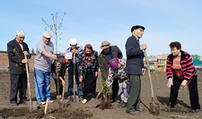 С песнями, шутками и позитивным настроением ветераны Великой Отечественной войны и труда, труженики тыла вместе с председателем Крутинского районного отделения Омской областной общественной организации ветеранов Галиной Ивановной Барановой заложили «Аллею ветеранов» на территории будущего парка.