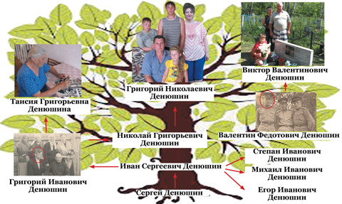 P.S. Мы проследили только две ветви рода Денюшиных. Где-то в 70-х годах прошлого века директором районной типографии работал Николай Степанович Денюшин. Наверняка есть и другие, не менее достойные, представители рода. Если вы хотите рассказать об истории своей фамилии, мы готовы вас выслушать. Звоните по тел. 2-19-06