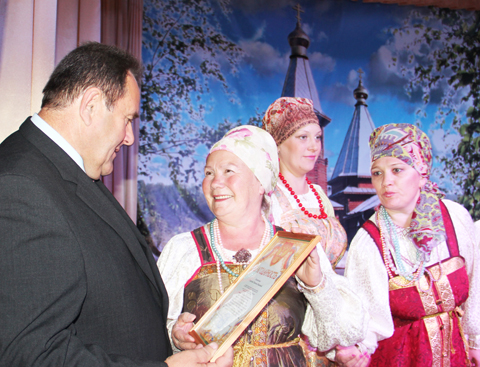 Таких талантов на сцене было достаточно. В первую очередь наш народный хор. Отдавая дань уважения прославленному коллективу, глава муниципального района Василий Киселев сердечно поздравил его с юбилеем Крутинки и вручил руководителю хора Марии Вербенец Почетный диплом.