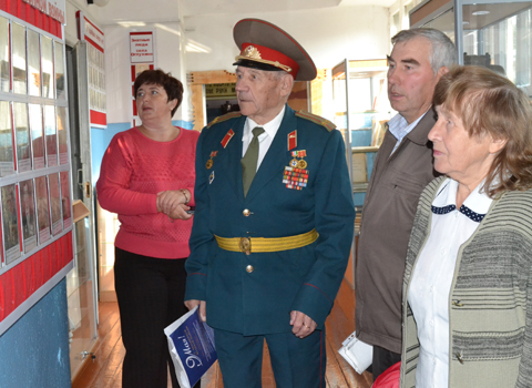 Встретиться со своими ровесниками 88-летнему солдату Великой Отечественной не довелось. Многие не вернулись с полей сражений, а кому посчастливилось отпраздновать Победу в 45-ом, не дожили до сегодняшнего дня. Петр Сергеевич увидел знакомые лица лишь на портретах в обновленном школьном музее. Экскурсию для гостя провела заведующая музеем Луиза Александровна Плотникова.