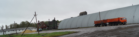 Здесь работа не прекращается даже в проливной дождь. Механик Сергей Ермаков, переключая кнопки погрузчика, заполняет кузов машины, которая направляется к бункеру сушилки.