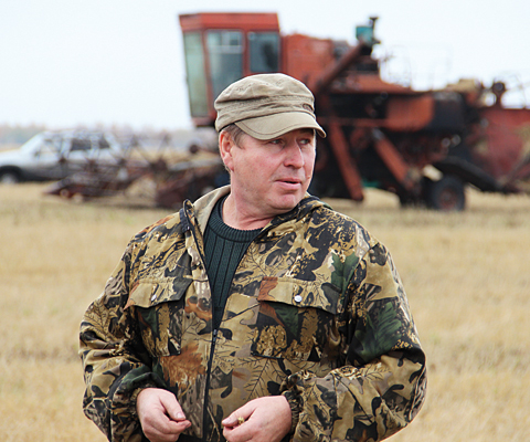 В центре поля мокнут под дождем два изрядно поизносившихся комбайна. Обоим почти по тридцать лет. Их хозяева Олег Лаптев и Александр Костюченко сегодня из-за погоды не при делах.