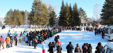 Это будет потом, а пока на центральной площади села начинается торжественное открытие праздника. Спортсменов напутствует заместитель главы муниципального района Сергей Головин, главный судья соревнований Михаил Пентюхов, Снежная Королева в лице местной девятиклассницы Дарьи Теплинских.