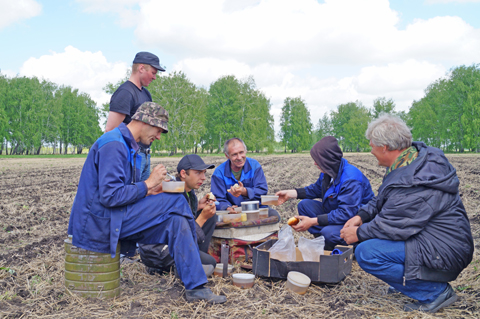 За пару часов мы с Владимиром Горячевым объехали все звенья, «накормили» вкусным обедом более сорока трактористов, сеяльщиков, заправщиков. По пути наблюдаем дружные всходы зерносмеси, посеянные кулисой.