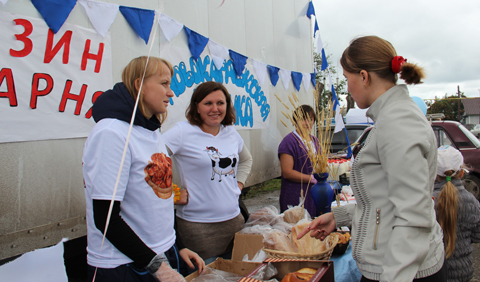 Их торговый павильон порадовал нас ароматной сдобой и молочными продуктами: маслом, сметаной, кефиром, молоком. Крутинцы такое изобилие без внимания не оставили.