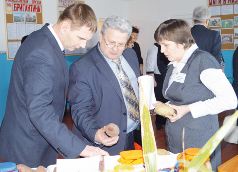 Сергей Канунников не смог удержаться и попробовал соленые грузди, которые привезла Пановская школа на выставку продукции со школьных приусадебных участков района. Министр вспомнил о большом празднике урожая, прошедшем в Крутинке в сентябре, и порадовался, что даже в конце зимы учреждения образования могут представить результаты своего труда. Обилие солений-варений, картофеля разных сортов, комнатных цветов, балконных овощей приятно удивило гостей.