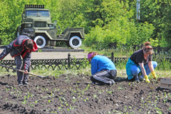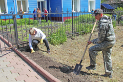 Пока творческая комиссия осматривала достопримечательности райцентра, сотрудники предприятий и организаций в пятничный летний денек вносили свою лепту в благоустройство поселка.