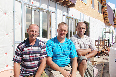 В новой реальности выстояли не все, но Юрий Иошин себя не потерял. Вместе с Виктором Абелем строил поликлинику в райцентре, ремонтировал здания в больничном городке, ставил дома в Новгородцево, Оглухино и далее везде. Вместе с ним вот уже почти десять лет эти парни, что на снимке: Дмитрий Галушко и Федор Тарасов.