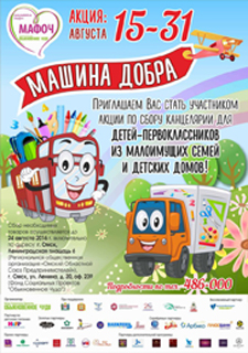 Приглашаем всех жителей Омска, неравнодушных к судьбам детей-первоклассников из малоимущих семей и детских домов, принять участие в ежегодной благотворительной акции «Машина Добра», которая пройдет с 15 августа по 31 августа 2016 г.