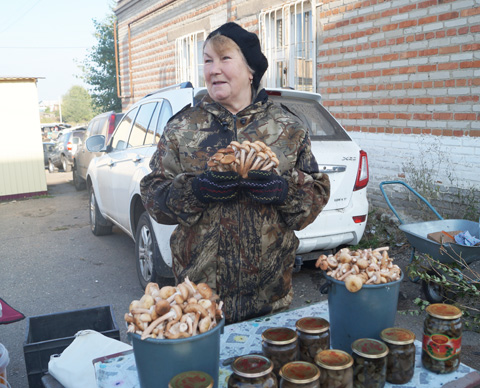 Свои заповедные места есть и у Надежды Первиковой из Паново. В один из понедельников она привезла опят: один к одному, семейками и порознь. Товар уходит влет. Надежда Андрияновна занимается грибами почти профессионально. Будучи на пенсии, «пропадает» в лесу с мая по октябрь, пока не ляжет снег. Весной идет на сморчки, потом берет сырые с обабками, они же подберезовики, на «десерт» опята. И копейка в бюджет, и здоровье про запас.