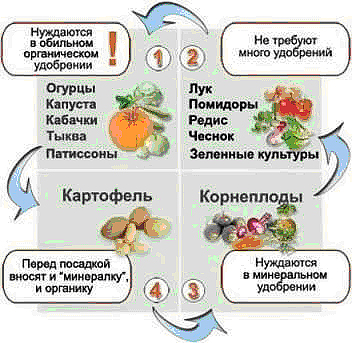 - корнеплодам - ранняя капуста, картофель, томаты;
