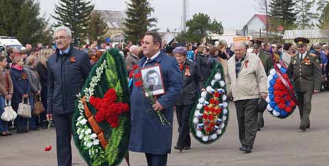 Дружно шествовали в строю супруги Калугины с портретами своих героев: Сергеем Трифоновичем Портнягиным, который воевал на Белорусском фронте, и Тимофеем Евдокимовичем Калугиным, погибшим в 1944 году.