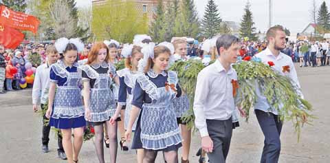 Выпускники 2017 года возложили собственноручно изготовленные венки к монументу. За ними проследовали представители предприятий и организаций райцентра, а затем – и все присутствующие. Стоит ли говорить, что многие шли со слезами на глазах.