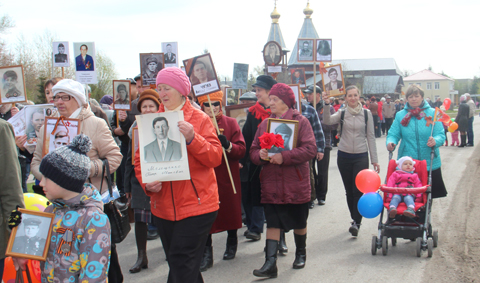 9 мая патриотическая акция «Бессмертный полк» прошла в каждом сельском поселении района. По улицам Оглухино, к примеру, с портретами отцов, дедов и прадедов, защищавших Отечество в годы Великой Отечественной войны и ковавших Победу в тылу, прошагали более 100 человек, среди них большинство – школьники. Более 50 наследников Победы стали участниками акции в Толоконцево, более 30 – встали под знамена «Бессмертного полка» в Рыжково. И не было в этот день ни одной семьи, где бы не вспоминали своего героя.