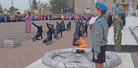 Еще одним местом единения крутинцев стал районный Дом культуры. Победе, любви к Родине были в этот день посвящены все вокальные и хореографические номера в исполнении профессионалов и любителей, взрослых и детей. Уже традицией стало выступление хора коллектива районной администрации. А мэр Крутинки Вячеслав Токарев вальсировал с дочерью Ольгой – выпускницей гимназии. Не меньший фурор произвела песня о Родине в исполнении Виктории Васильевой. Ее сильный голос глубоко запал в души крутинцев и на митинге, где девушка исполнила песню в сопровождении танцевальной группы ДШИ, заставившую многих прослезиться.