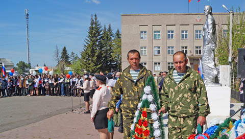 Глава района, офицеры погрануправления и юная гимназистка Лиза Ципина торжественно разрезали алую ленту перед мемориалом и раздали ее в качестве памятных сувениров. Дальнобойщики, проезжающие мимо по федеральной трассе, приветствовали нашу церемонию клаксонами. А самую яркую точку этому событию поставил праздничный салют.