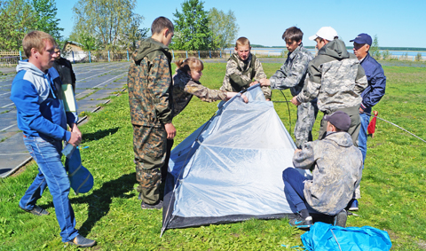 Основными испытаниями для них стала военизированная эстафета, где ребята состязались в ловкости и сноровке на восьми этапах: стрельбе из винтовки, умении поставить и разобрать палатку, пройти по «кочкам», проползти, не задев препятствие, бросить точно в цель «гранату», показать подготовку в силовых упражнениях.