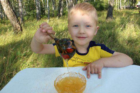 Наш маленький земляк, четырехлетний Матвейка Шромов (на снимке), точно знает, что самый вкусный мед приносят пчелки с пасеки его деда. Он помогает ему расти здоровым и сильным.