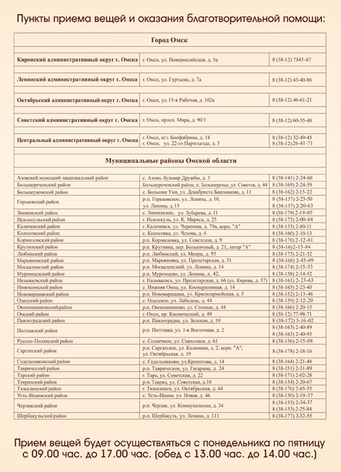 Пункты приема и выдачи вещей: