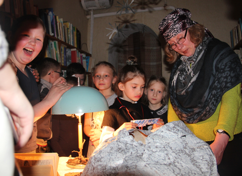 После библио-шоу мальчишки и девчонки разошлись по «станциям». Они гадали по книгам на «Магическом острове», при свете фонарика осваивали «сумеречное чтение», создавали красивые открытки в «городе мастеров».