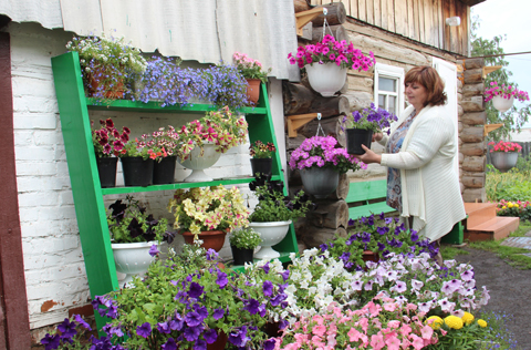 Наталья Бутенко с улицы Мелиораторов – призёр прошлого года, постаралась и в нынешнем не ударить в грязь лицом. Издалека видны деревянные вазоны и декоративный колодец, из которого «выплескивается» водопад ее любимых петуний. Сортов и расцветок у Натальи Борисовны не счесть.