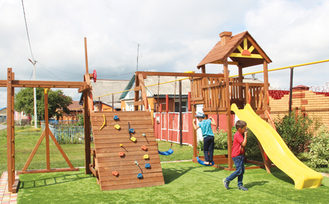 Усадьба Олеси и Романа Ильченко - вне конкуренции. Они позаботились не только о своих, но и всех детях с улицы Кунгурова, создав за двором детскую площадку. Роман говорит, вначале убирали качели на ночь, но затем стали оставлять. Все на месте. Значит, культура крутинцев повышается. Некоторые гости даже снимают обувь, ступая на искусственный газон. Хозяева это ценят. Ведь именно им содержать площадку в чистоте и исправном состоянии. Пройдя в ворота, можно заметить - все выполнено в одном стиле: и дом, и ограда, и двор. Очень органично смотрятся дорожки, клумбы, посыпанные крашеной галькой, зона отдыха, камин, кованые качели. У дома развивающе-игровой комплекс для детей. Замечательная идея для огородников – вымощенные тропинки, и галоши не надо надевать. Отсюда открывается чудесный вид на озеро. В общем, не дом, а мечта.