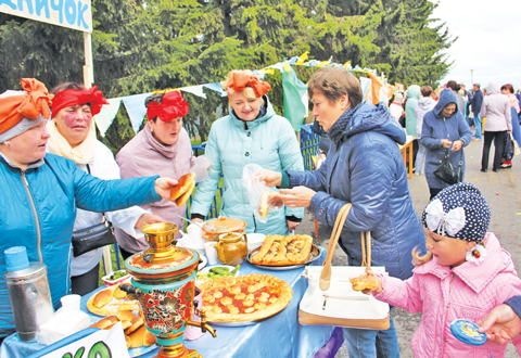 Именно здесь и разворачивается главное праздничное действо. Гостеприимно зазывают на свои подворья, где можно угоститься разной аппетитной снедью, специалисты детских садов, ДДТ, Крутинской центральной районной больницы, психоневрологического интерната и других предприятий и организаций райцентра.