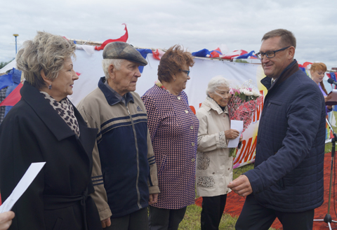Аплодисментами встречают участники праздника Почетных жителей Крутинки Т.З. Гобец, которая в этом году будет отмечать свой 90-й день рождения, Г.И. Баранову, В.П. Смаракова, Н.Н. Золотову. Приветствуют многодетную семью Андрея и Татьяны Варакиных, молодоженов Андрея и Викторию Гоноховых, рубиновых юбиляров – супругов Сергея и Галину Сизовых, победителей конкурса «Лучший двор-2018», чьи имена уже известны нашим читателям.