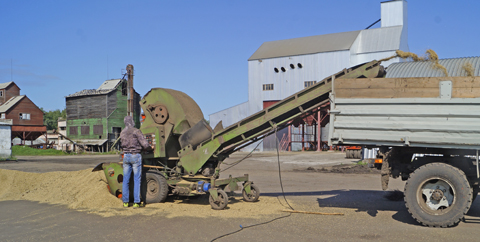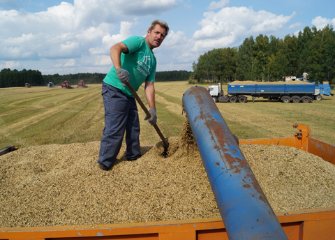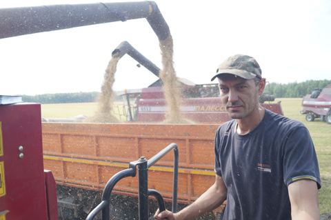 Уборочный комплекс к жатве готов давно. Акционеры трижды пытались выйти в поле, но дожди всякий раз загоняли их обратно. С первой попытки далась лишь сотня гектаров гороха. Наконец, выбора не осталось, и в последний день августа, на две недели позже прошлогоднего, комбайнеры Сергей Денискин, Валерий Казанцев, Петр Сазонов, Александр Чехлов, Евгений Зорин, Александр Петренко все-таки смогли пройти по кругу ячменного поля. С 400 гектаров они взяли по 15 центнеров зерна.